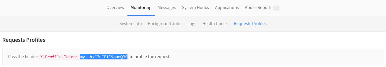 1. Grab the profiling token from Monitoring > Requests Profiles admin page (highlighted in a blue in the image below).